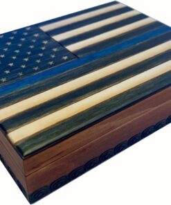 - Handmade US AMERICAN FLAG w/ Blue Stripe wood box. Dimensions: 6-1/8 in. x 4-1/2 in. x 1-3/4 in. Handmade in the Tatra Mountain region of Poland.